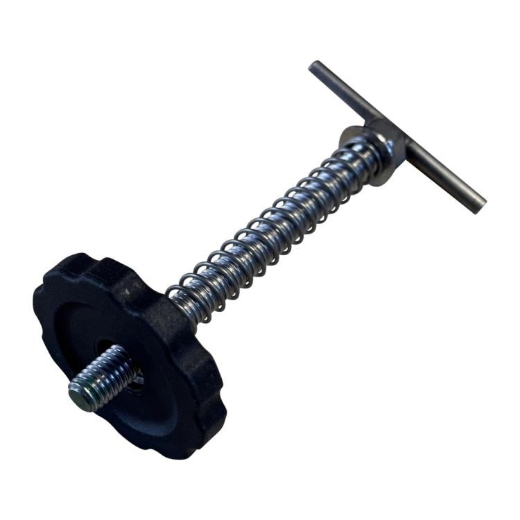 Ici, le profilé est serré entre les deux écrous moletés.