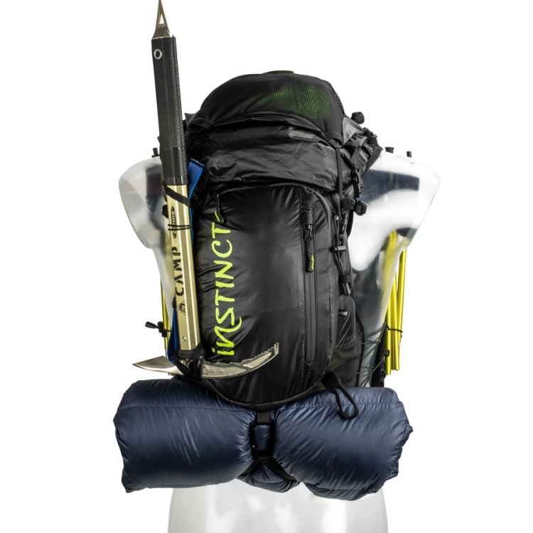 – Pochette supérieur amovible pour les petites affaires (kit sécurité, frontale, outils, etc). Une poche en maille extensible offre un rangement immédiat à une veste de pluie voir un panneau solaire