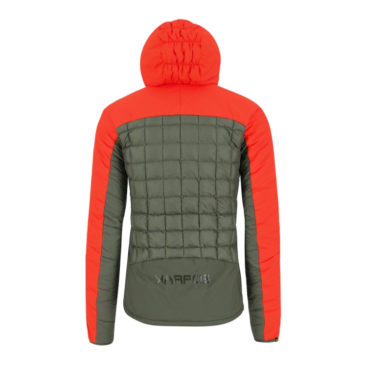 La chaleur est assurée par l’isolation hybride, avec tissu PrimaLoft® Silver Active 100 sur les manches, la capuche, les côtés et le bas de la veste, et tissu K-Synthetic Down Micro sur le centre du vêtement.