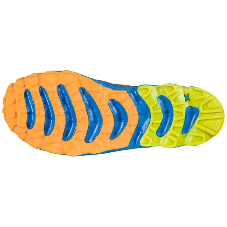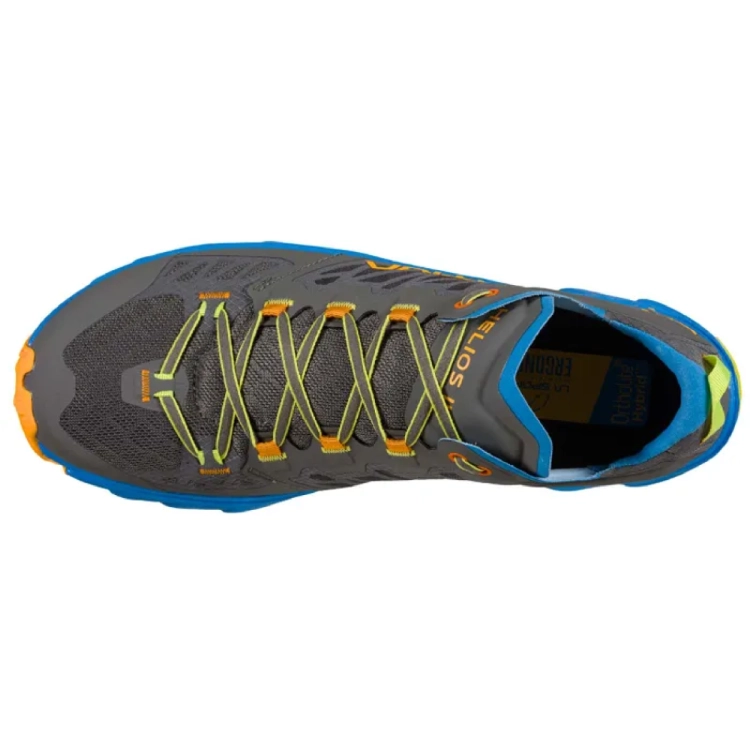 La Sportiva Helios III est la chaussure « polyvalente » la plus légère de la marque. Elle est pensée pour partir s’entrainer depuis la maison jusque dans les chemins. Sur sol dur, chemin et sentier trail elle vous accompagnera partout. Sa semelle au profil « roulant » et sa gomme FriXion Blue très résistante à l’abrasion excellent sur sol sec. En revanche, lors de vos sorties sur sol gras l’accroche de la Helios III montrera ses limites. En terrain très accidenté, de par sa légèreté la protection du pied face aux roches et cailloux reste faible.