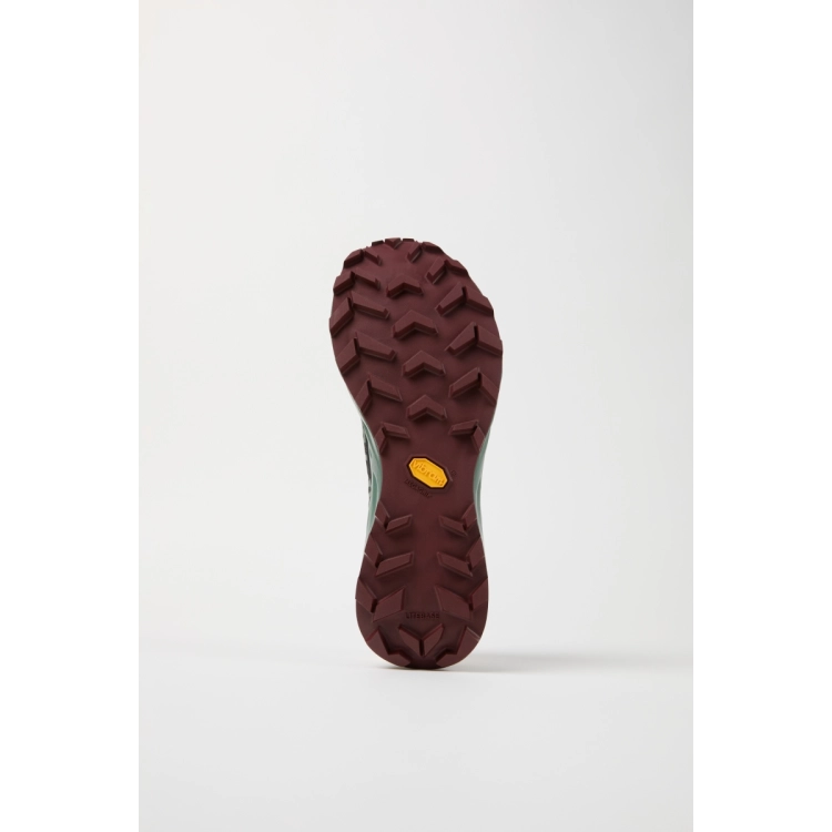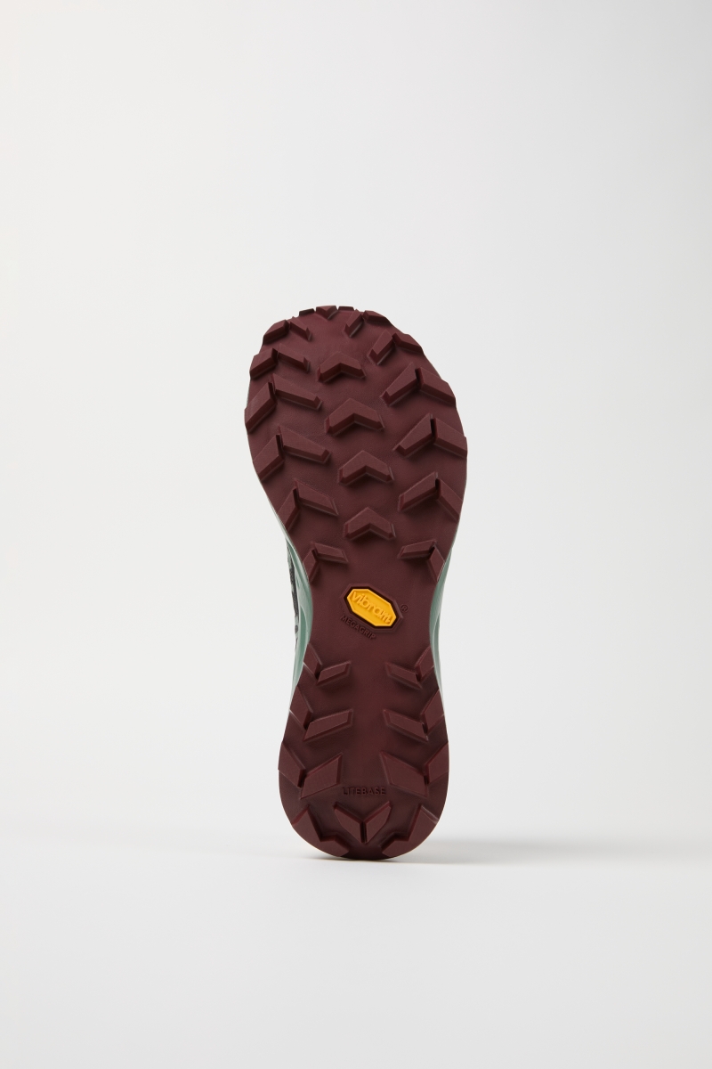 La semelle extérieure VIBRAM® Litebase réduit le poids total de la semelle de 30 % en diminuant de moitié l'épaisseur de celle-ci, tout en conservant une forme parfaite et des crampons de 3,5 mm. Cela permet de maintenir le poids total de la chaussure en dessous de 200 g (taille 8 UK).