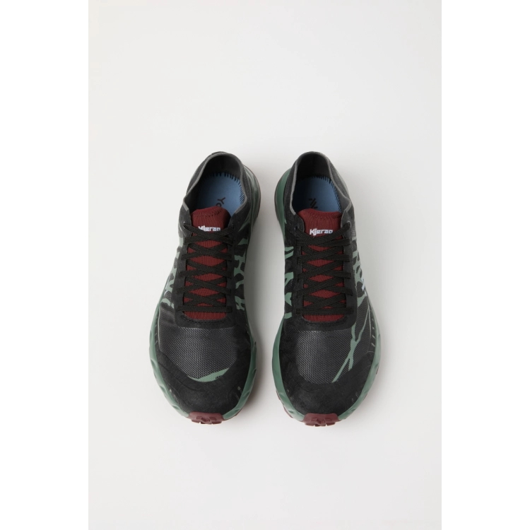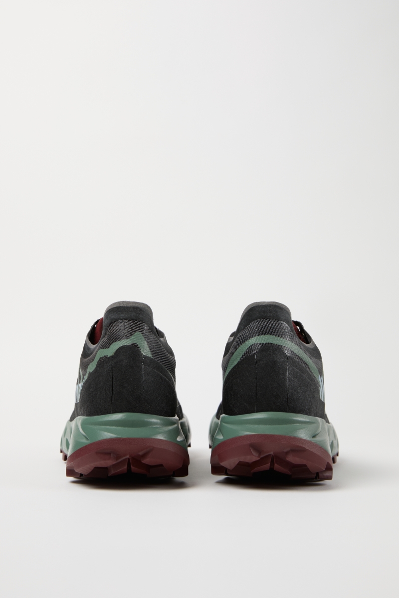 La tige, exceptionnellement respirante et durable, est tissée à partir de fils de polyamide et de Kevlar® enduits individuellement. Fabriqué en Ardèche (France), ce processus de teinture permet de réduire la consommation d'eau de 50 à 95 % par rapport aux autres méthodes.