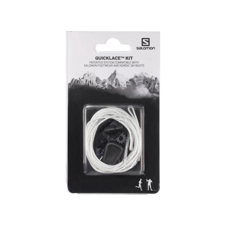Le QUICKLACE kit blanc est un accessoire Salomon qui vous permet de serrer et desserrer vos chaussures rapidement et facilement. Il se compose d'une longueur de quicklace et d'une boucle, qui sont rangées dans une poche sur la chaussure. Pour l'utiliser, il suffit de tirer l'excédent de quicklace de la poche et de serrer ou desserrer les lacets à l'aide de la boucle. Le système est conçu pour être facile à utiliser et à ajuster en cours de route, ce qui le rend idéal pour le ski nordique et autres activités où vous devrez constamment ajuster l'ajustement de vos chaussures.