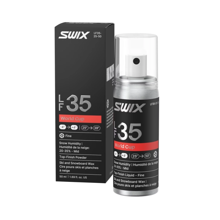 Atteignez une vitesse maximale dans la neige fine et fraîche avec le liquide Top Finish Swix World Cup LF35.